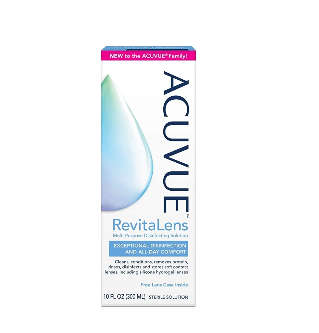 Acuvue™ RevitaLens Multi-Purpose Disinfecting Solution cleans, rinses, disinfects, stores, removes surface deposits including lipid and proteins, and re-wets soft (hydrophilic) contact lenses. It provides exceptional disinfection and all day comfort.