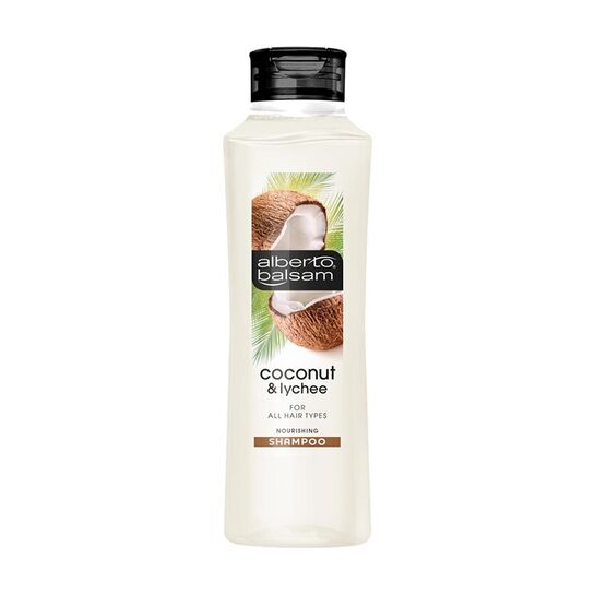 alberto balsam coconut and lychee shampoo – 350ml. it nourishes damaged hair and adds shine thanks to the pro-vitamin B5 contained in its formula. it uses same ingredients that you’ll find in higher priced hair care brands.