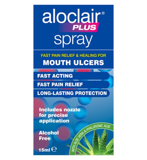 Aloclair Plus Spray is a form of treatment that is designed to treat ulcers and other types of tissue damage in the mouth. It works by protecting the exposed nerves caused the ulcer or lesion and helping to numb them in order to reduce pain.