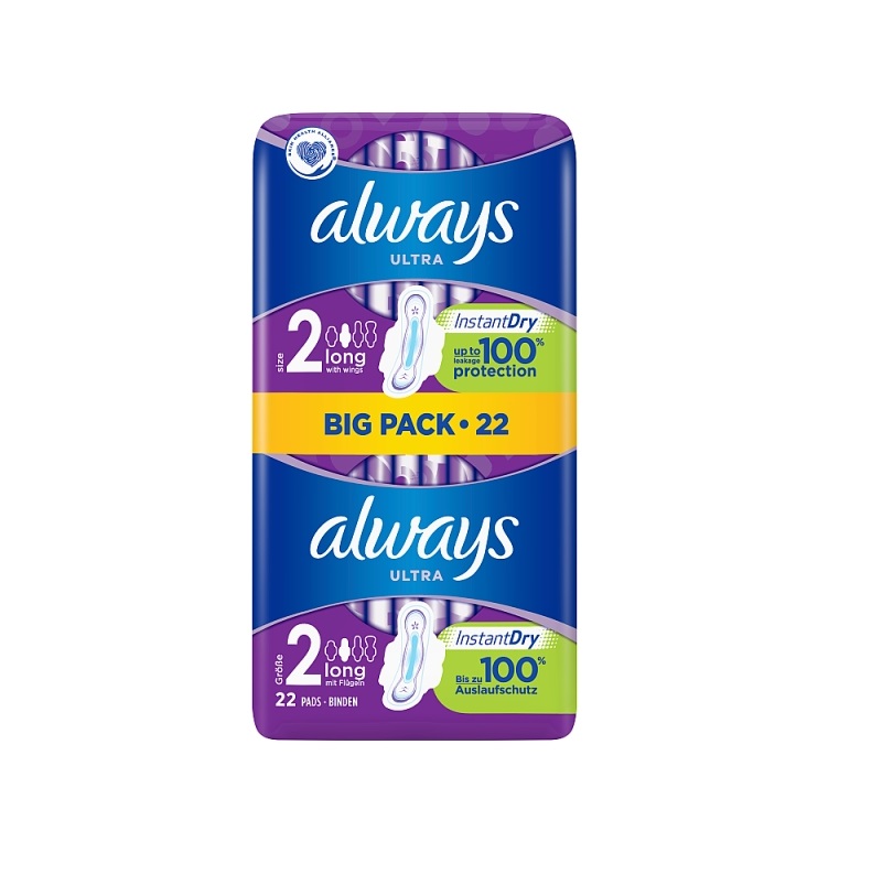 Stay protected and confident during your period with ALWAYS Ultra Long (Size 2) Sanitary Towels with wings. Thanks to a super absorbent core with InstantDry System that absorbs wetness in seconds, ALWAYS Ultra Sanitary Towels keep you free from leaks. Plus, Odour Neutralising Technology keeps you feeling confidently fresh all day long, while a Flex and Fit System helps your pad contour to your individual body shape. Dermatologically tested to be gentle on your skin and approved by the Skin Health Alliance, 3mm thin ALWAYS Ultra Sanitary Towels help you stay confident and comfortable during your menstrual cycle.