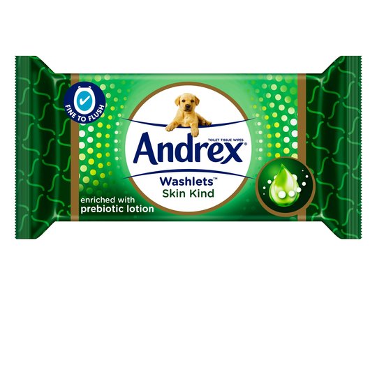 Andrex® Skin Kind Washlets are uniquely designed lightly moistened toilet tissue enriched with prebiotic lotion. Use alongside your regular Andrex® toilet tissue to leave you feeling cleaner and fresher. Andrex® Skin Kind Washlets are safe to flush down your toilet, as they have passed both international INDA/EDANA flushability standard and now the UK flushable standard Fine to Flush.