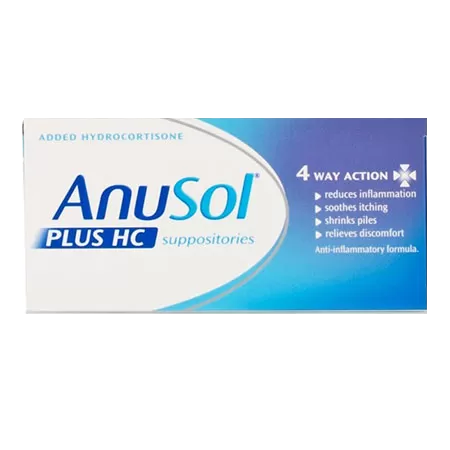 Anusol Plus HC Suppositories are specially formulated to provide relief for internal haemorrhoids, commonly referred to as piles. These suppositories act as anti-inflammatory agents, targeting symptomatic discomfort within the rectal passage. With a gentle and soothing effect, this treatment combines six active ingredients that work together to effectively alleviate pain and reduce inflammation.