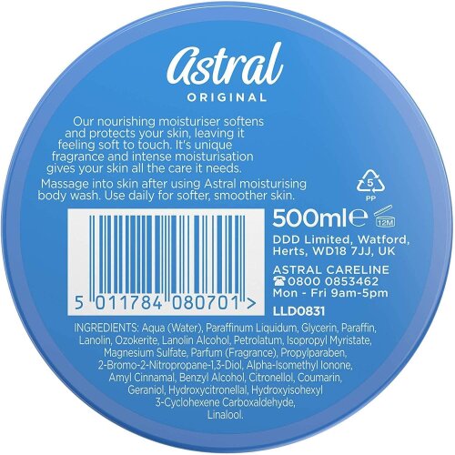 Astral Intensive Moisturiser – 500ml softens and protects your skin with its fragrance and moisturisation feeling soft to touch.
