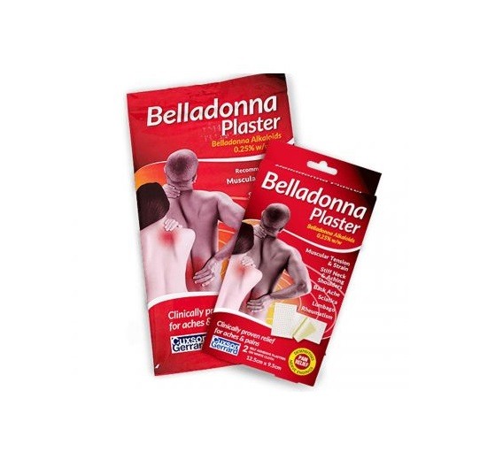 Belladonna Plaster clinically proven relief for aches and pains, using a natural ingredient. The only product of this type that is a licensed medicine. Recommended for muscular tension, stiff necks, aching shoulders, sciatica and back ache. Contains Belladonna Alkaloids.