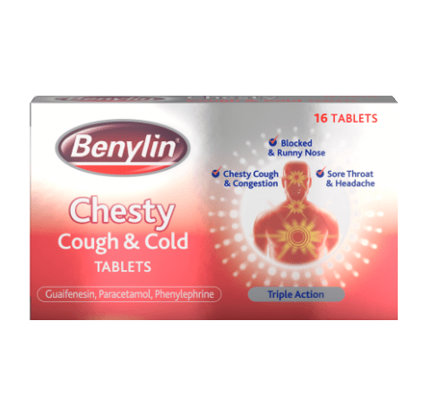BENYLIN® Chesty Cough and Cold Tablets provide relief by targeting your cough deep down in your chest and also helps relieve symptoms of your cold.
