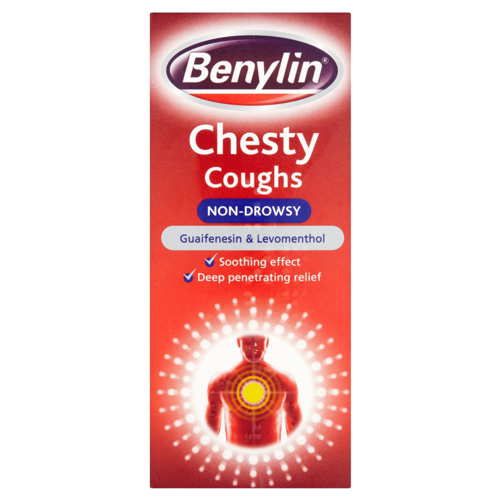 BENYLIN Chesty Coughs Non-Drowsy works deep down in the chest to help loosen phlegm to help you cough it up, and also helps clear bronchial congestion.