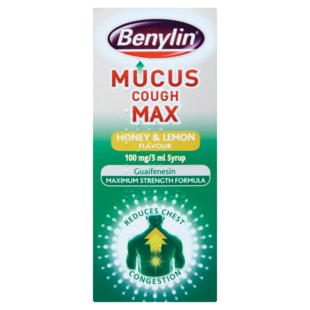 Benylin Mucus Cough Max Honey & Lemon Flavour Syrup works to thin and loosen mucus making it easier to cough up.