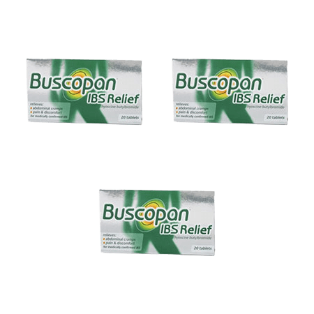 BUSCOPAN IBS RELIEF is a tablet containing hyoscine butylbromide. This medicine is to relieve the abdominal cramps which cause pain and discomfort associated with Irritable Bowel Syndrome. It belongs to a group of medicines called antispasmodics. It works by relaxing the cramping muscles of your bowel.