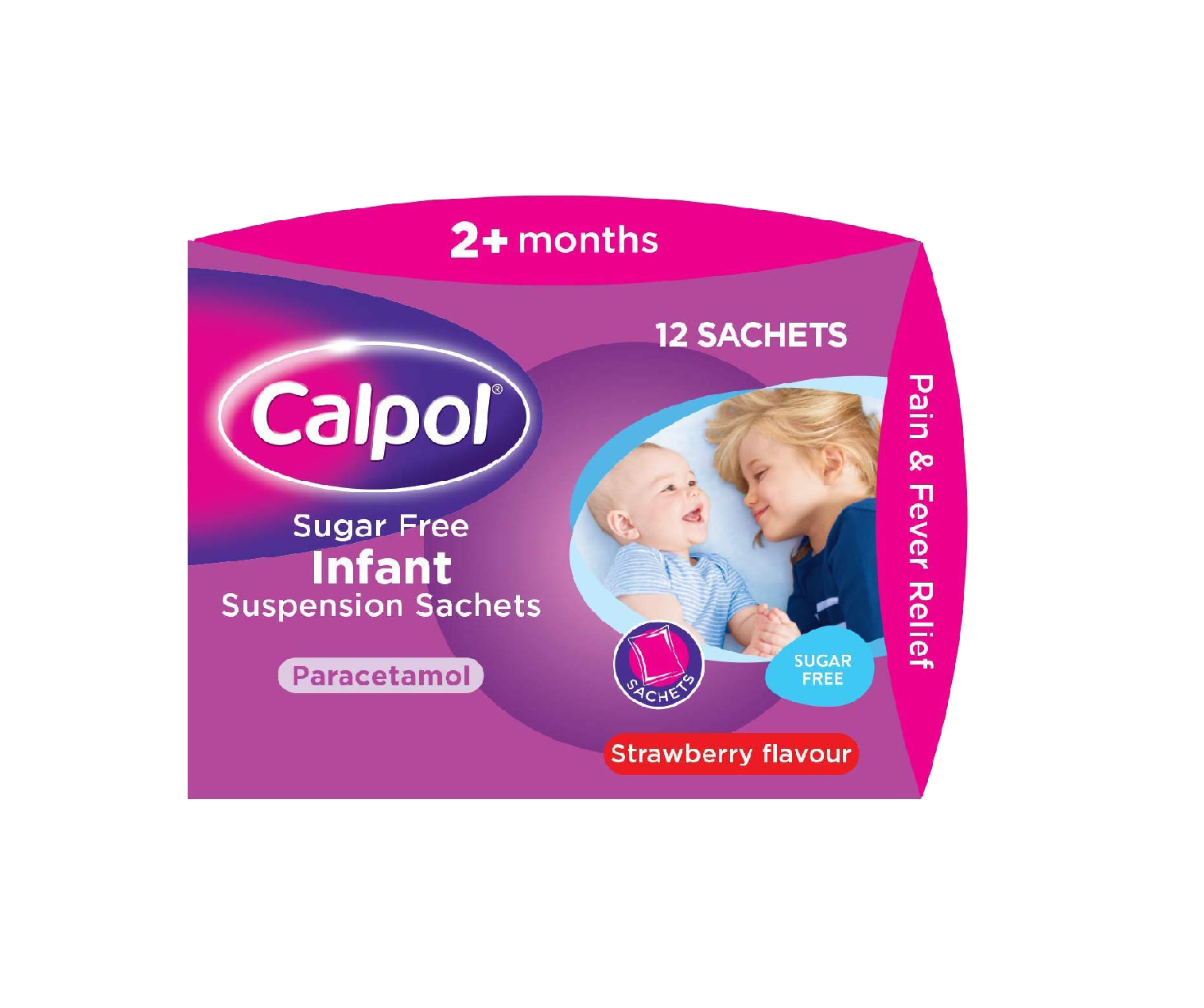 Calpol Sugar Free Infant Suspension Sachets is an oral medicine for pain relief and fever reduction formulated especially for infants and young children. It contains paracetamol as the active ingredient and is provided as a sugar-free strawberry-flavoured suspension in convenient single-dose sachets.