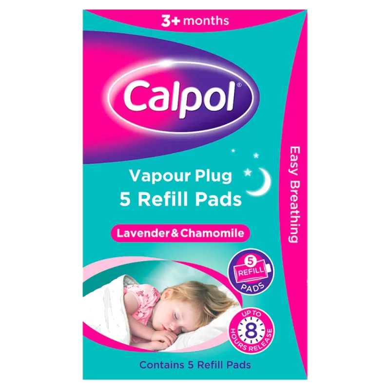 The Calpol Vapour Plug Refill pads contains a blend of aromatic oils including lavender, chamomile, menthol, camphor and eucalpytus.