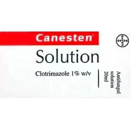 Canesten Solution is used to treat fungal skin infections such as ringworm, athlete’s foot, fungal intertrigo and fungal infections of the outer and middle ear.