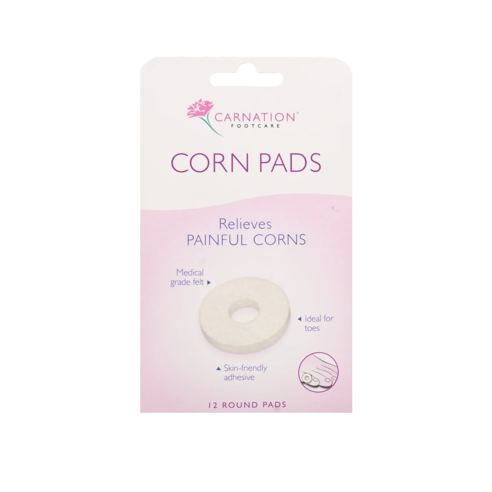 Carnation Corn Pads Round – Proven approach to pressure relief on painful corns. A round design makes them perfect for corns on the sides of toes. Corns are the most common of all foot problems and come in various forms. The most common are hard corns and soft corns.