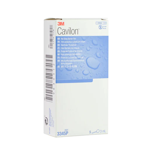 3M Cavilon No-Sting Barrier Film is a polymeric solution which forms a uniform film when applied to the skin. The Product is dispersed in unique non-cytotoxic, non-stinging solvent, which dries rapidly. Cavilon No Sting Barrier Film helps to protect intact or damaged skin from irritation caused by urine and/or fecal incontinence, digestive juices, wound drainage, adhesives and friction and shear. This film is colorless, transparent, and possesses good oxygen and moisture vapor permeability.