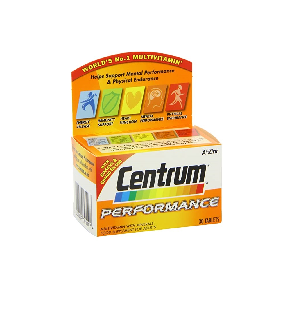 Centrum Performance includes pantothenic acid and Ginkgo Biloba which helps maintain an active mind and zinc which contributes to the maintenance of normal bones. In addition vitamins B6 and B12 help unlock energy from your diet.