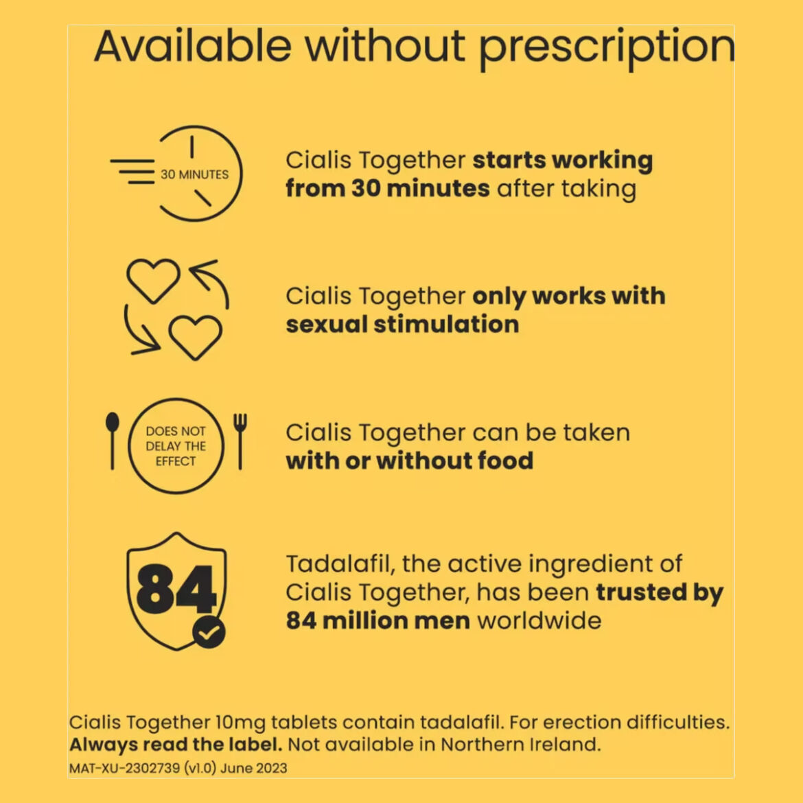 Cialis Together is used to treat erectile dysfunction (ED) in adult men aged 18 years and over.
