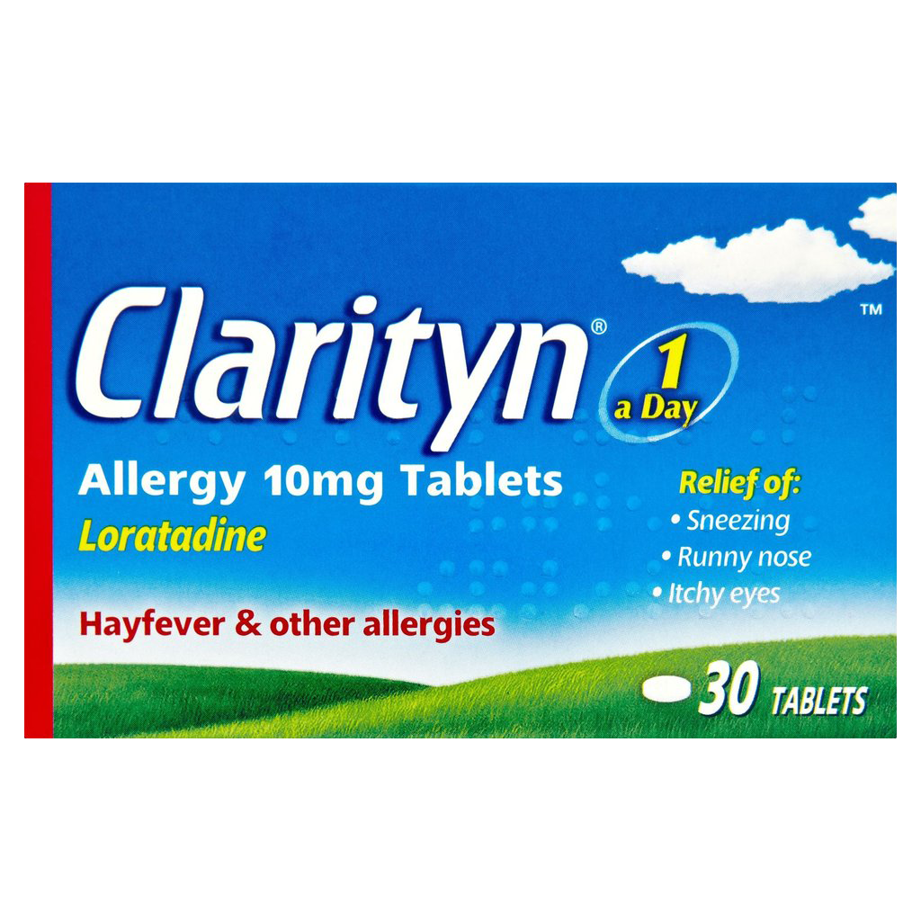 Clarityn Allergy 10mg Loratadine Tablets for the relief of Hayfever & other allergy symptoms like sneezing, runny nose and itchy eyes.