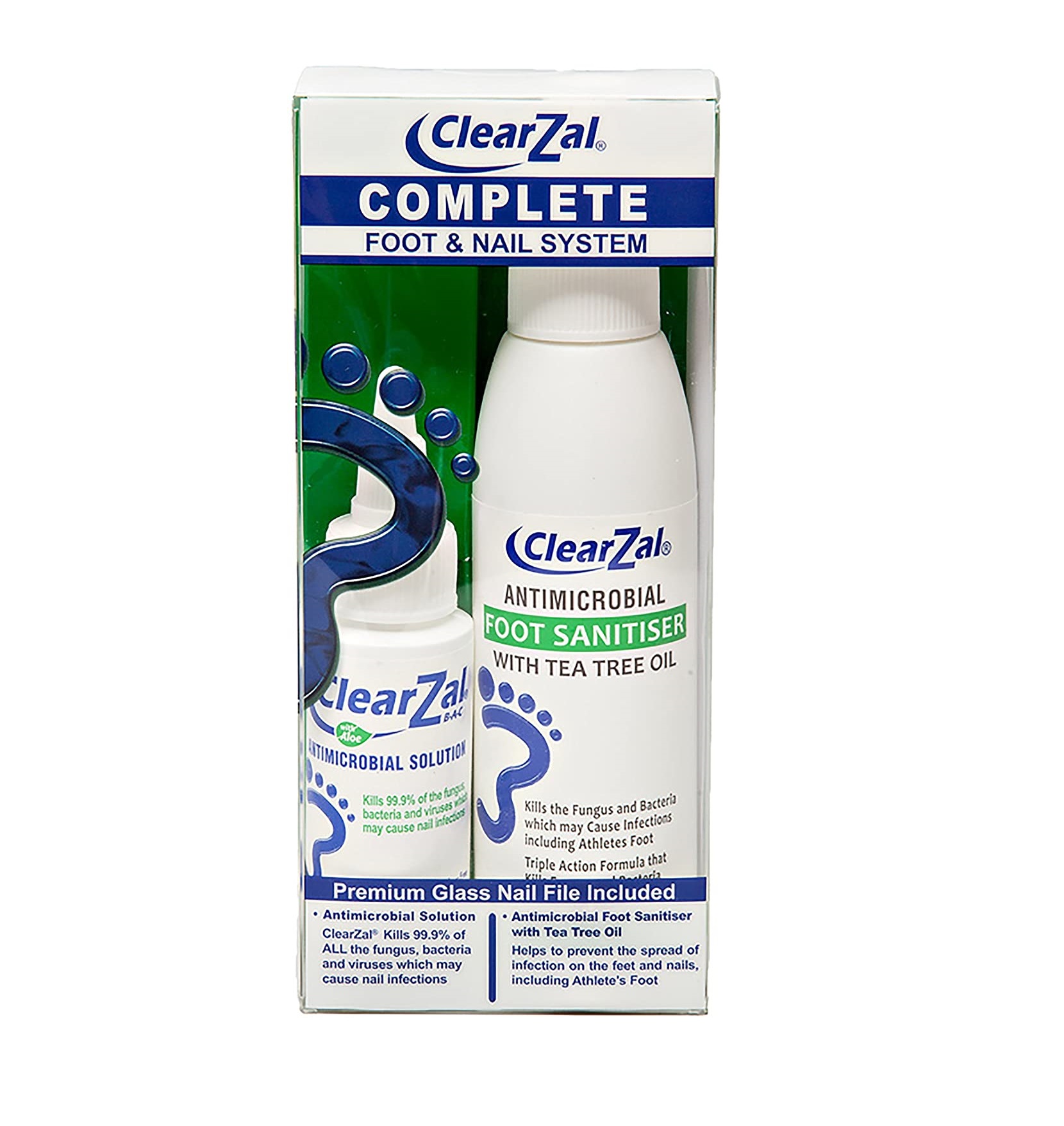 ClearZal Complete provides a complete solution for managing nail infections AND to kill the germs on feet and shoes that spread infection. The Complete Kit includes the Antimicrobial Nail Solution, Foot Sanitizer and the Premium Nail File, described here: