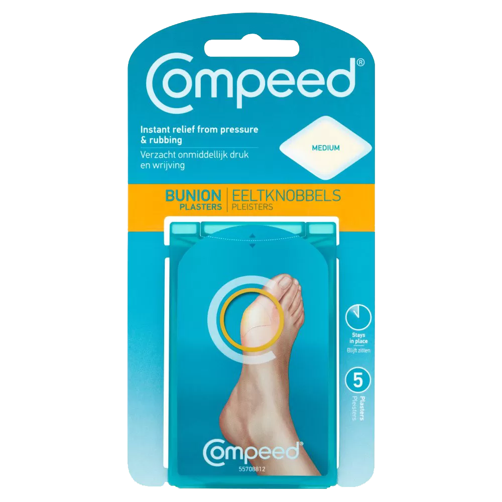 Specially designed to fit around the foot, COMPEED® Bunion Plasters provide instant relief from painful pressure and rubbing. They help to prevent blisters and further hardening of the skin which can lead to other painful skin conditions.