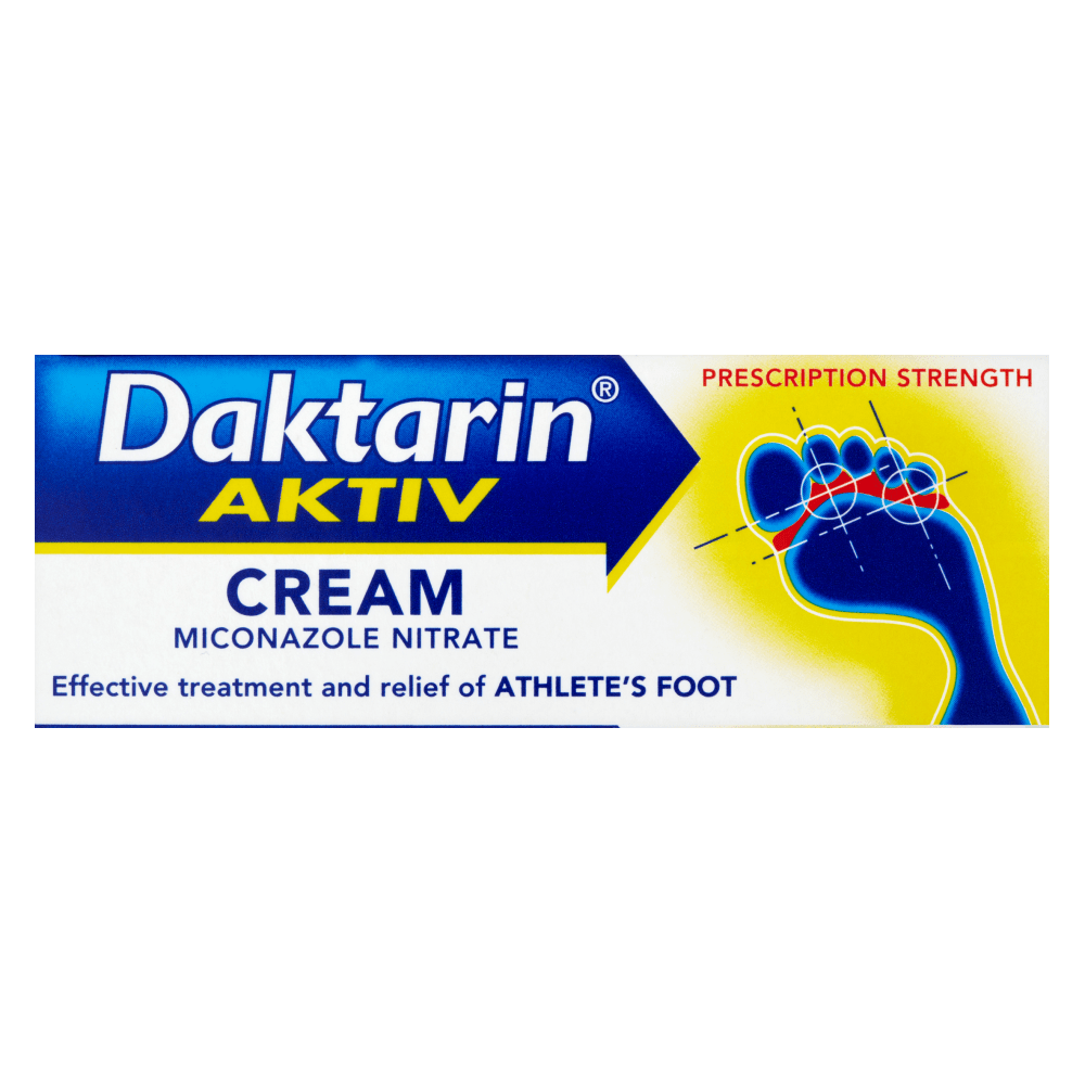 Daktarin Aktiv Cream is a medicine which is used to effectively treat and relieve Athlete’s Foot. The cream contains miconazole nitrate which works by destroying both the fungus that causes the infection and some of the associated bacteria which may also be present. It also has moisturizing properties to help soothe cracked, red skin caused by Athlete’s Foot.