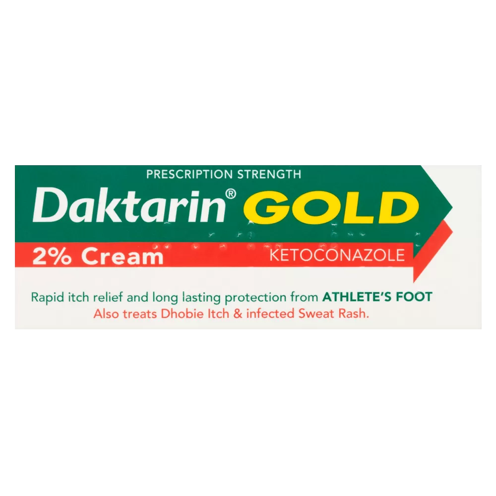 Daktarin Gold 2% Cream is a medicine which is used to treat skin infections which may appear on the feet (Athlete’s Foot), in the groin area (Dhobie itch/tinea cruris) or between skin folds (Sweat Rash infected with a yeast infection ‘thrush’). The cream rapidly relieves the itching which these fungal infections cause. It also provides long lasting protection from Athlete’s Foot, as it will continue to work even after you have stopped using it.