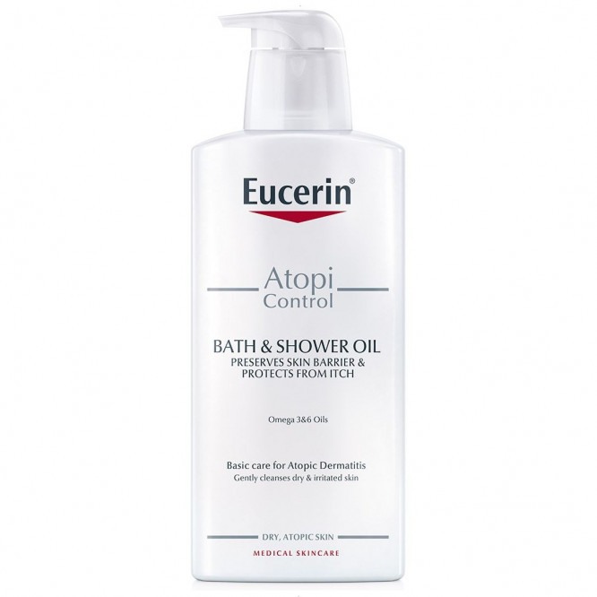 Eucerin AtopiControl Bath and Shower Oil gently cleanses, soothes, relieves itching and supports the skin’s natural barrier. Even with regular washing, the skin is protected from further dryness and itching.
