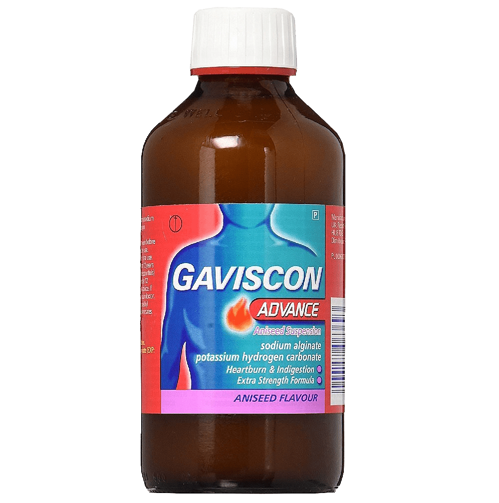 Gaviscon Advance Liquid Aniseed contains double the concentration of sodium alginate compared with Gaviscon Original and therefore provides the strongest Gaviscon treatment that works as a raft. i.e by forming a thick layer on top of the stomach contents which prevents acid rising back up into the oesophagus (food pipe).