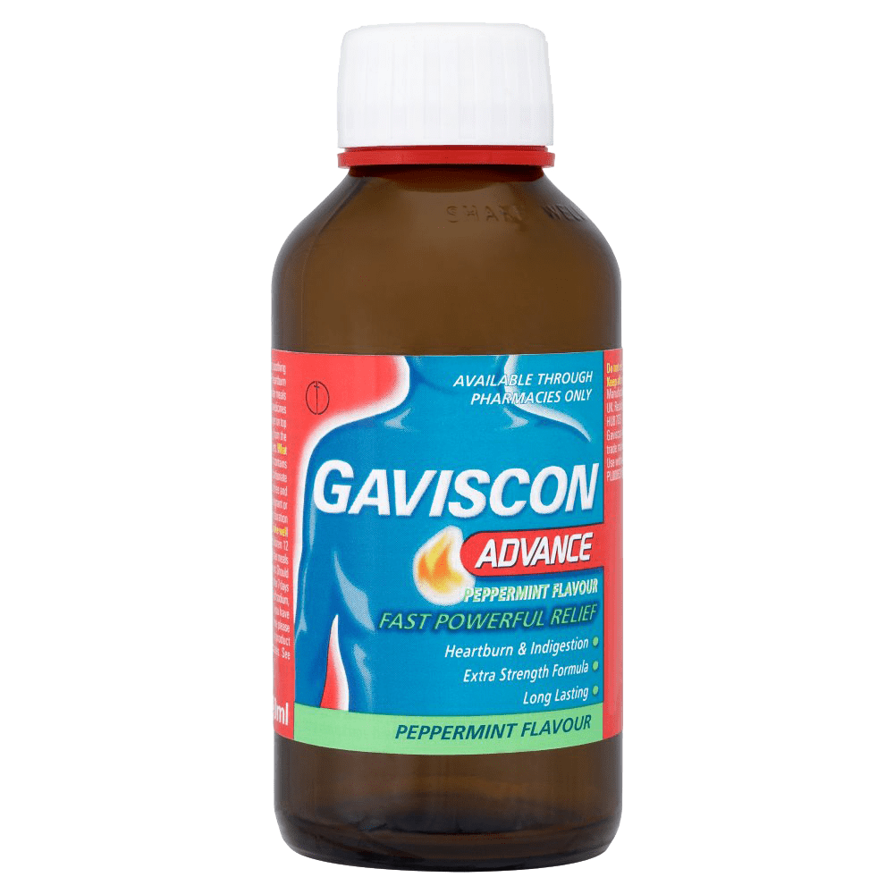 Gaviscon Advance Liquid Peppermint contains double the concentration of sodium alginate compared with Gaviscon Original and therefore provides the strongest Gaviscon treatment that works as a raft. i.e by forming a thick layer on top of the stomach contents which prevents acid rising back up into the oesophagus (food pipe).