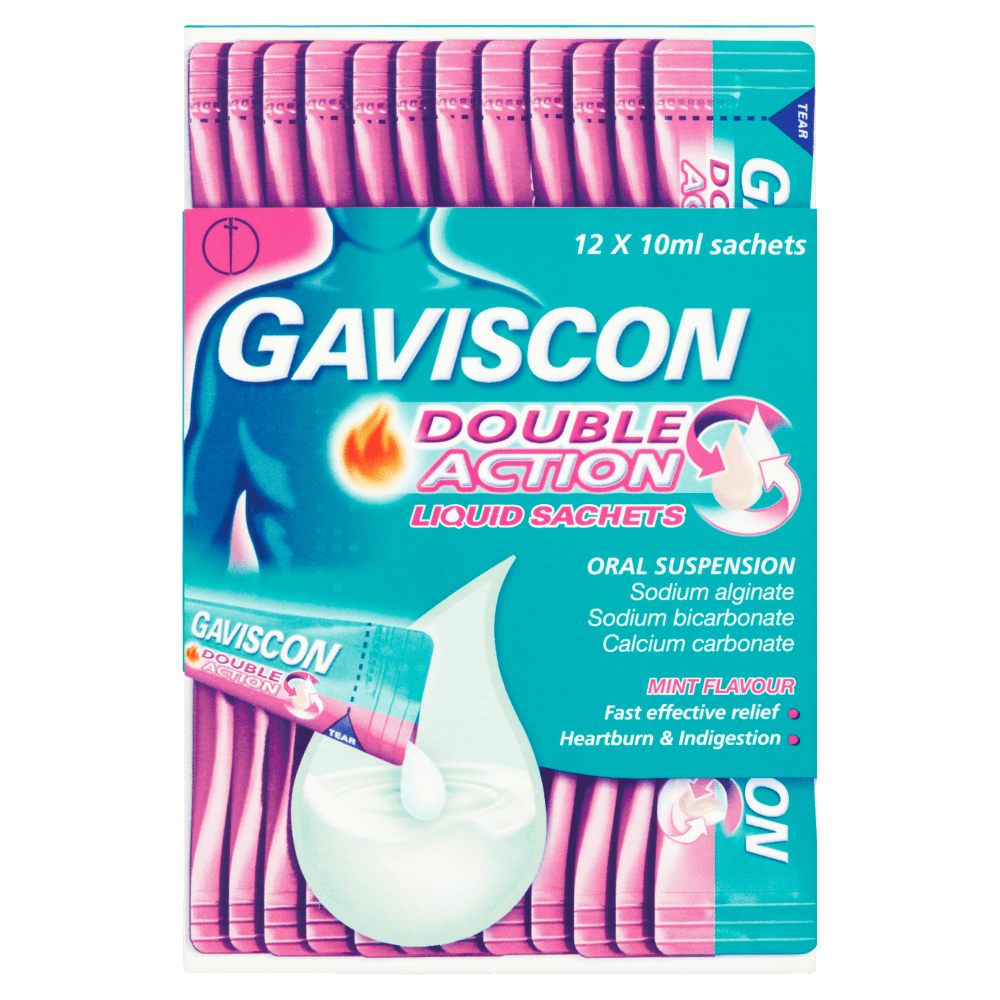 Gavison Double Action Liquid Sachets 24s bring fast and effective relief from the pain and discomfort of heartburn and acid indigestion. They get to work by neutralising excess stomach acid to relieve pain and discomfort and forming a protective barrier over the stomach contents to soothe the burning pain in your chest.