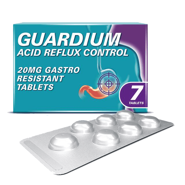 The producers of Gaviscon have created Guardium Acid Reflux Control tablets as a treatment for acid reflux and heartburn. Simply take one of these tablets once day for a few days to soothe your irritation and manage acid reflux. Guardium, which has the active ingredient esomeprazole, is ideal for anyone over 18 with frequent heartburn who want to find a clear remedy to relieve their symptoms.