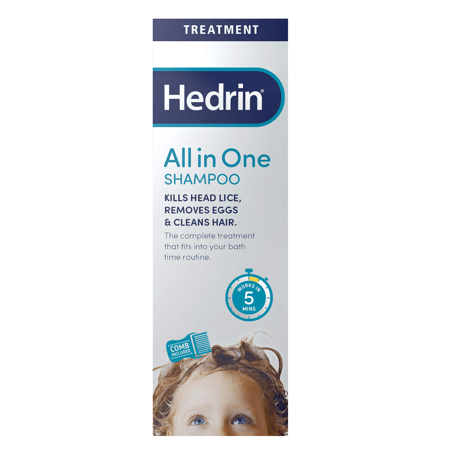 • Hedrin All in one shampoo is pesticide- free, so you can use it whenever you need to. It’s the complete headlice treatment, without the drama.