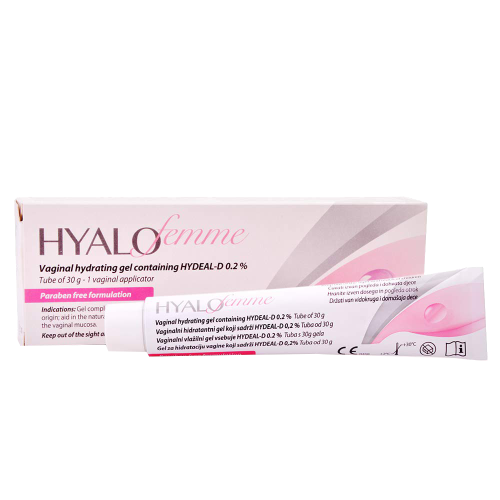 Hyalofemme is a transparent gel which can be used as a complementary treatment for vaginal dryness caused by a variety of factors. It was developed specially for women whose moisture levels of the vaginal epithelium are inadequately balanced and who therefore have a tendency to itching, inflammation and bacterial infections.