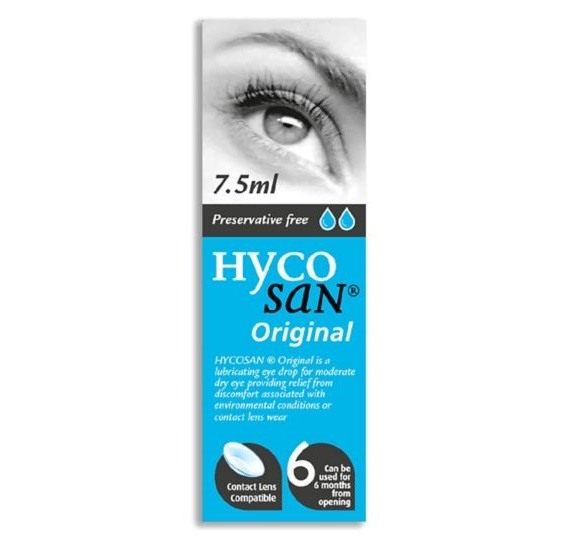 Hycosan original is a lubricating eye drop for moderate dry eye providing relief from discomfort associated with environmental conditions or contact lens wear. Hycosan original is a sterile preservative and phosphate free solution for ocular use.