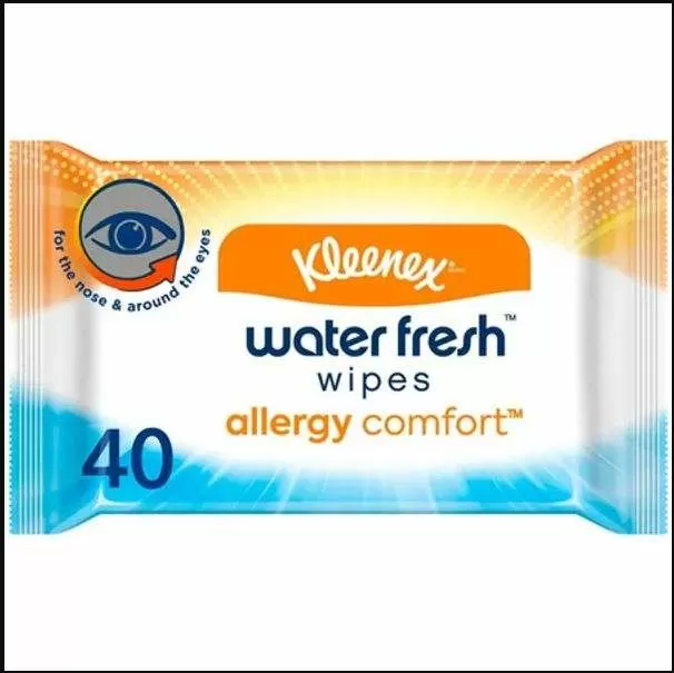 Kleenex® Allergy Comfort™ Water Fresh™ Wipes are designed to provide relief from allergy symptoms, removing allergens and offering an instant refreshing sensation. Infused with 99% water, these wipes effectively address hay fever, pet hair and dust, so you can confidently face your allergies.
