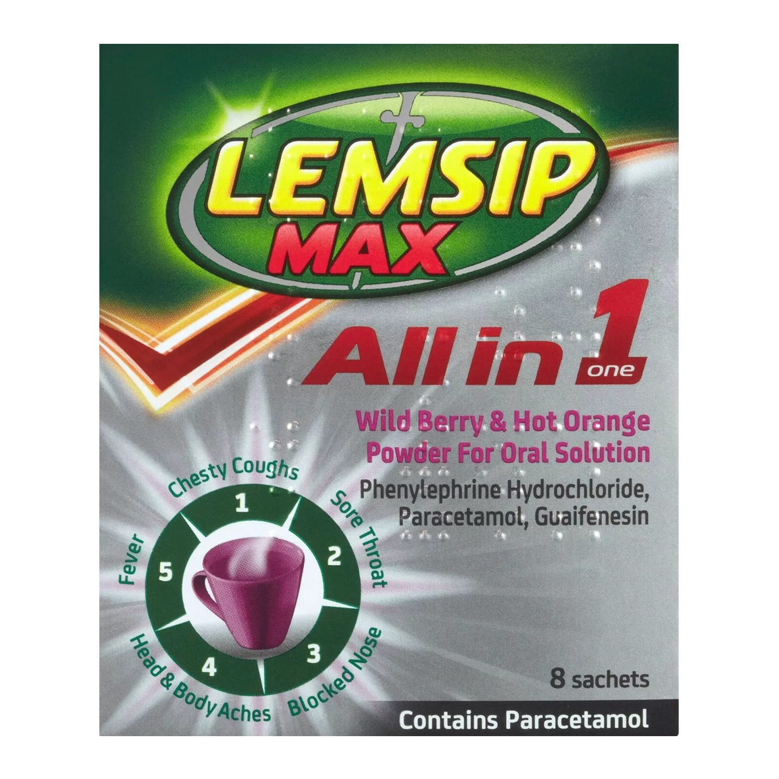 Lemsip Max All In One Drink Wild Berry & Hot Orange – 8 Sachets