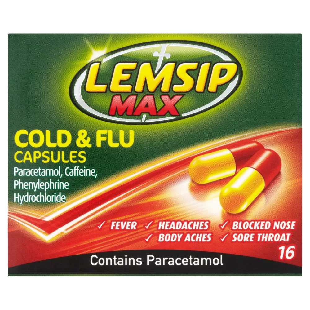 Lemsip Max Cold & Flu Capsules are an effective way of dealing with heavy cold and flu symptoms and can be convenient especially for those on the go. The painkiller and decongestant work fast and relieve symptoms such as headache, body aches, blocked nose, fever, and sore throat. They also contain caffeine that can give you that extra boost you need when your feeling under the weather.