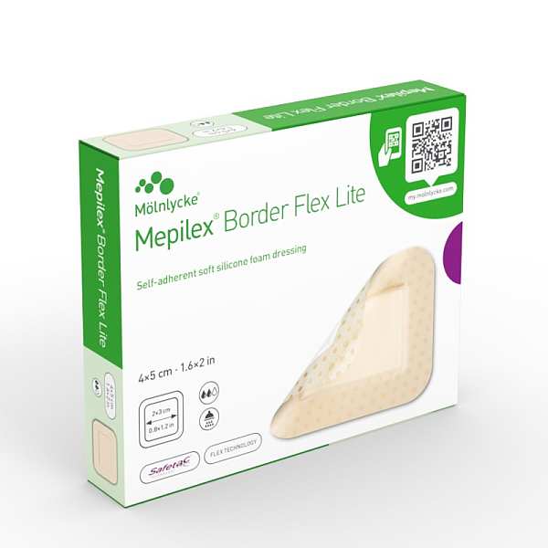 Mepilex Border Comfort Lite self-adherent soft silicone foam dressing is a solution for wound care. This dressing is designed to be gentle on your skin while providing excellent protection and comfort.