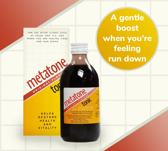 Metatone is a tonic containing vitamins and minerals used to help restore health and vitality after illness. It is used to get relief from cold & flu, or when you are feeling tired run down.