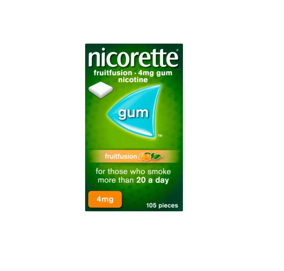 Nicorette Fruitfusion 4mg Gum Nicotine is used to relieve and prevent withdrawal symptoms and reduce the cravings you get when you try to stop smoking or when cutting down the number of cigarettes you smoke. It provides a safer alternative to smoking for both the individual and those around them. The gum is for smokers who smoke more than 20 cigarettes a day.