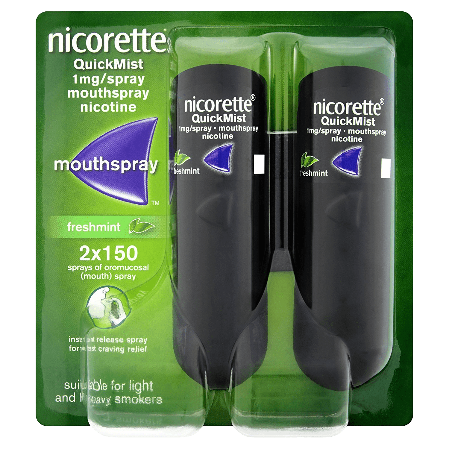 Nicorette QuickMist Freshmint 1mg Mouthspray Duo relieves nicotine cravings in just thirty seconds to help you quit smoking. The spray acts fast, to help you quit for good, no matter how many cigarettes you smoke.