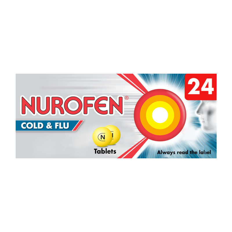 Nurofen Day & Night Cold & Flu contains ibuprofen and pseudoephedrine hydrochloride, which is effective in relieving the symptoms associated with colds and flu, including relief of aches and pains, sore throats, headache, nasal congestion (blocked nose) and lowering of temperature.