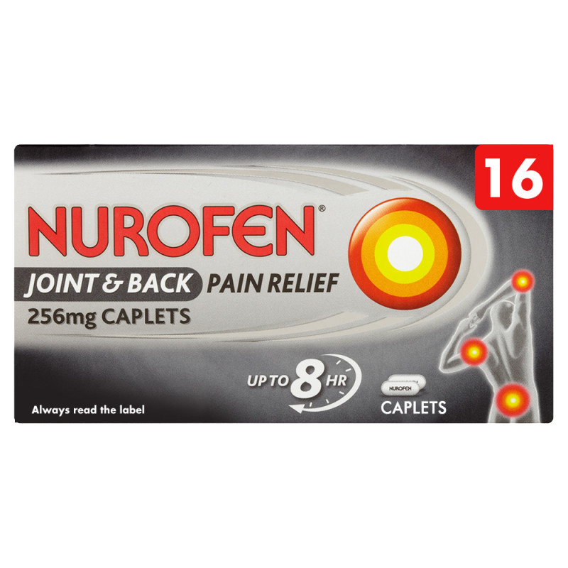 Nurofen Joint and Back Pain Relief 256mg Caplets contain Ibuprofen for effective pain relief of headaches, muscular and back pain.