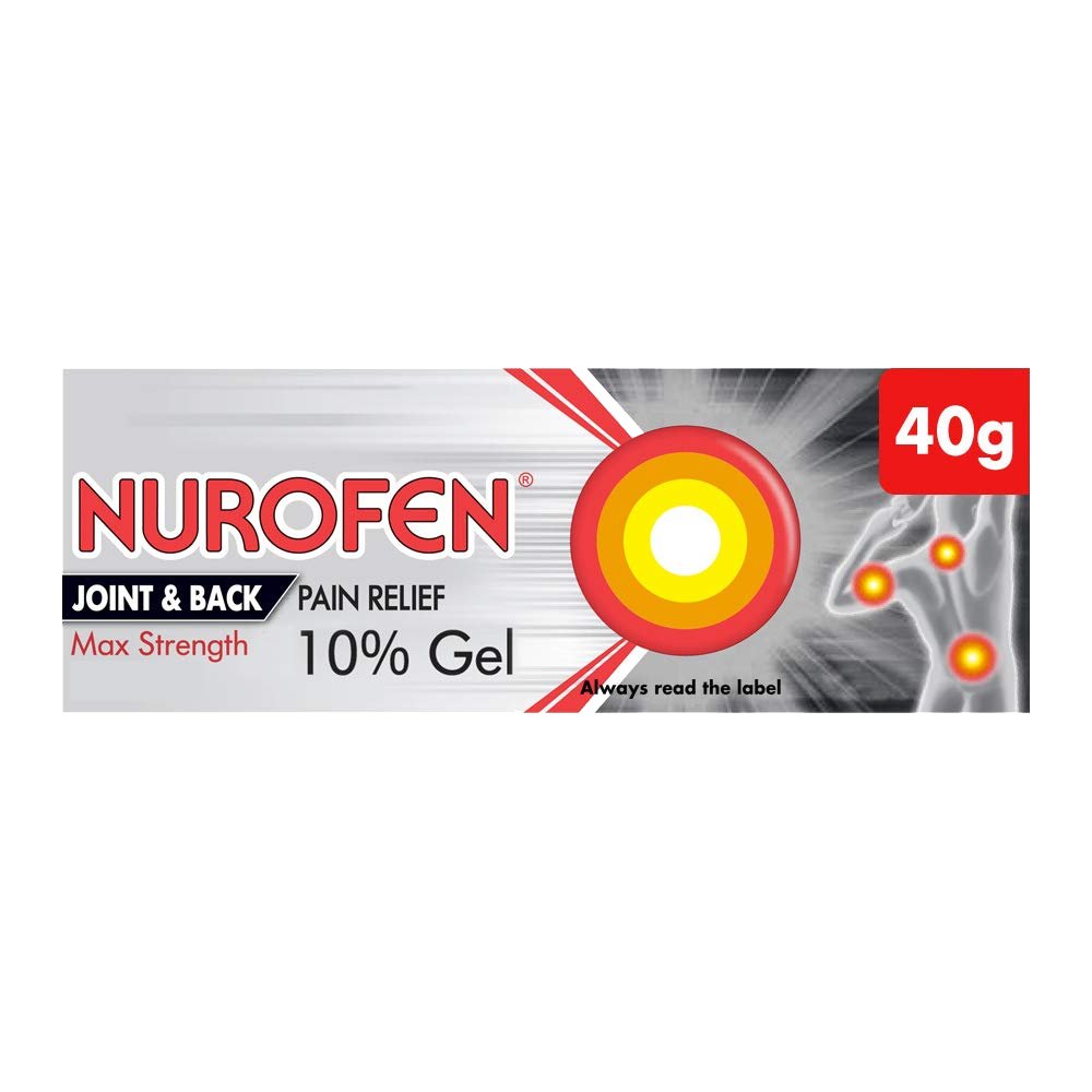 Nurofen Joint & Back Pain Relief Max Strength 10% Gel contains Ibuprofen and is used to treat a number of painful conditions affecting the joints and muscles such as back pain, rheumatic and muscular pain, sprains, strains and sports injuries.