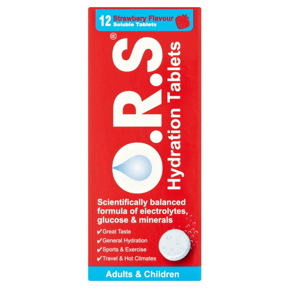 Home / Online Shop / Travel & Seasonal / Dehydration / O.R.S Adults & Children Strawberry Flavour – 12 Soluble Tablets