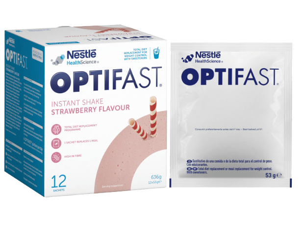 OPTIFAST Strawberry Shake Mix is a meal replacement to help you achieve significant weight loss. Simple and quick to prepare for breakfast, lunch or dinner, each sachet contains less than 220 calories with all the essential daily vitamins and minerals an adult needs (4 servings per day).
