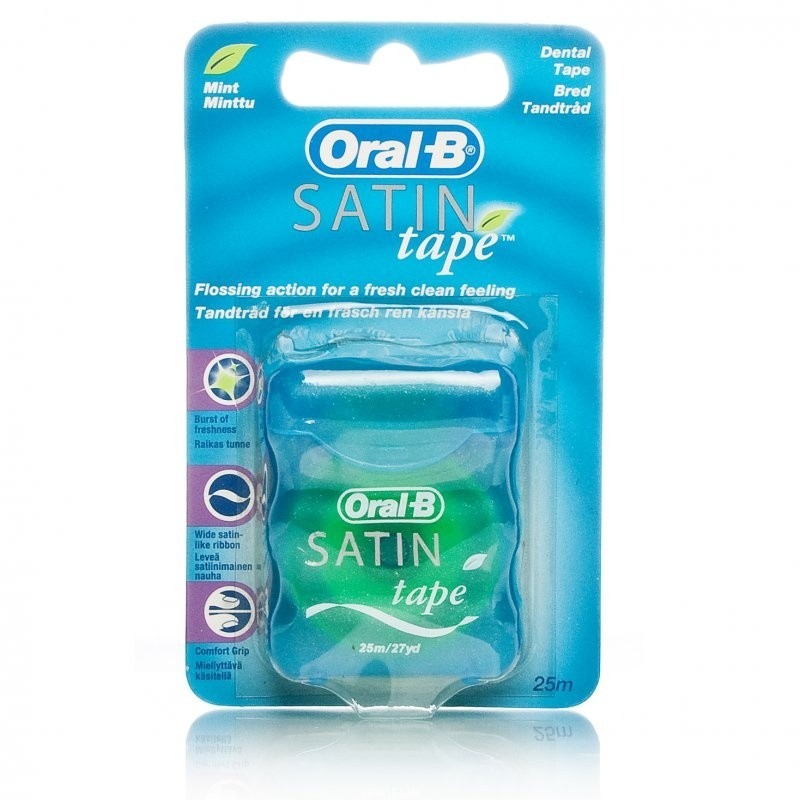 Oral-B Satintape instantly feels different as it releases a burst of mint freshness on contact that lets you know it is working. Its unique wide satin-like ribbon is comfortable to handle. Daily flossing with Satintape helps you do more to keep your teeth and gums healthy. Oral-B Satintape is perfect for new flossers or those who prefer wider floss. It comes in a single strand floss, composed of a nylon core and polymer outer layer is exceptionally shred and breakage resistant.