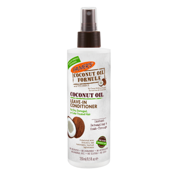 palmer’s coconut oil formula leave-in conditioner – 250ml instantly detangles, putting an end to tugging and pulling at knotty hair. With a few sprays hair has instant slip and silkiness for easier comb-through and styling.