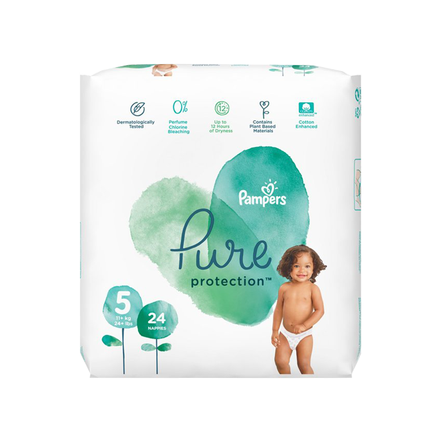 Pampers Pure Protection – Size 5 – 24 Nappies