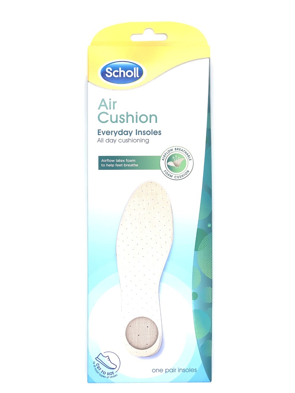 Scholl’s Air Cushion Insole is designed to provide you all day cushioning.