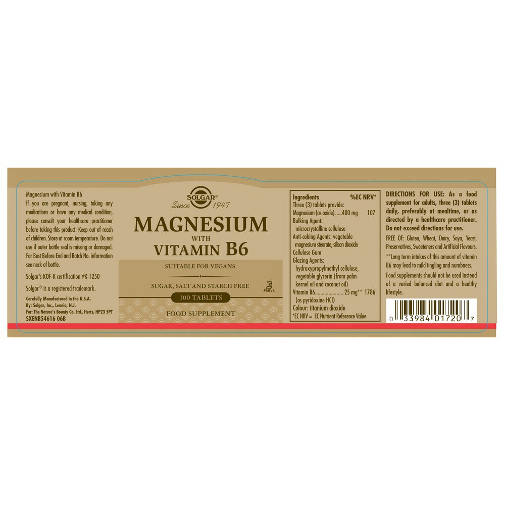 5. Vegetarian-Friendly: Solgar Magnesium with Vitamin B6 Tablets are suitable for vegetarians, as they are made from plant-derived ingredients. They are free from artificial colors, flavors, and preservatives, making them a wholesome choice for your health needs.