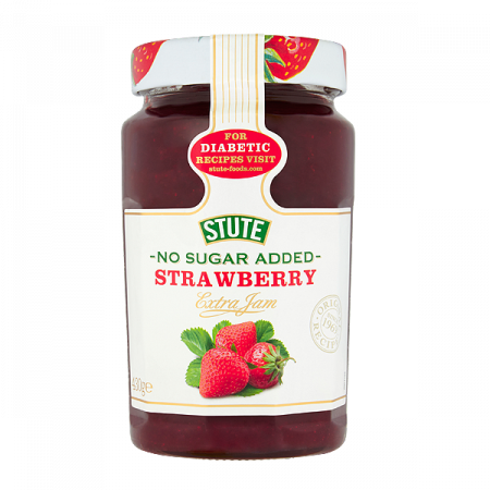 Stute No Added Sugar Jams are a range of delicious preserves which contain up to 90% less sugar and 30% less calories than regular jam. Perfect for those with diabetes or those who are simply looking for a healthier alternative to jam. Available in 6 different flavours, Stute Jams are perfect for spreading on toast, adding to porridge, or using in other everyday recipes as a lower sugar alternative.
